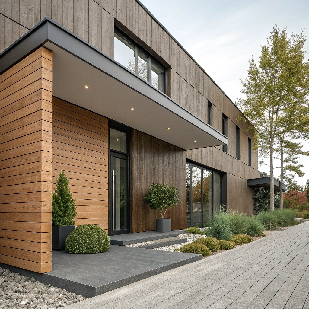 نوع نمای انتخابی: نوع نما (چوب پلاست، سنگ، آجر، کامپوزیت و غیره) تأثیر زیادی بر هزینه نمای ساختمان دارد.