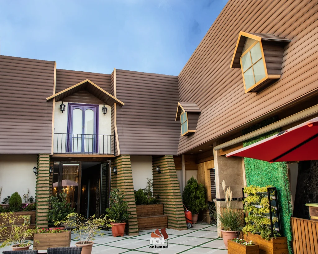 نما و سردرهای ناتوود با استفاده از پروفیلهای چوبپلاست طراحی میشوند تا ترکیبی از زیبایی طبیعی و دوام بالا را ارائه دهند. ساختار ماژولار این سیستم، امکان اجرا در ابعاد و فرمهای متنوع را فراهم میکند و جزئیات دقیق در درزها و اتصالات، ظاهری حرفهای، منسجم و ماندگار برای ساختمان ایجاد مینماید.